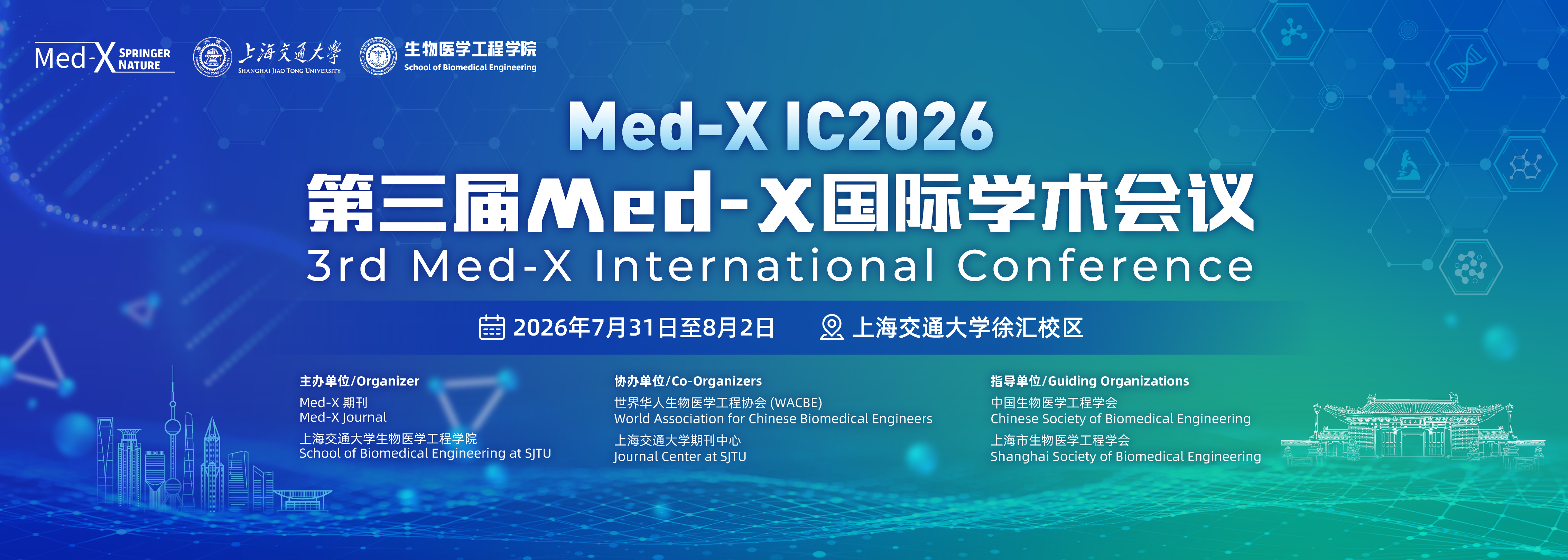 Welcome to the 3rd Med-X International Conference, to be held from July 31 to August 2, 2026, at the Xuhui Campus of Shanghai Jiao Tong University, Shanghai, China.